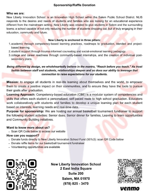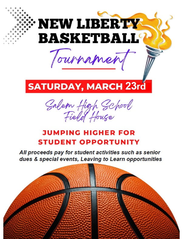 SALEM (Feb. 12, 2024) – The New Liberty Innovation School will host its second annual Basketball Tournament Fundraiser Saturday, Mar. 23, from 8:30 a.m. to 5:30 p.m. at Salem High School.